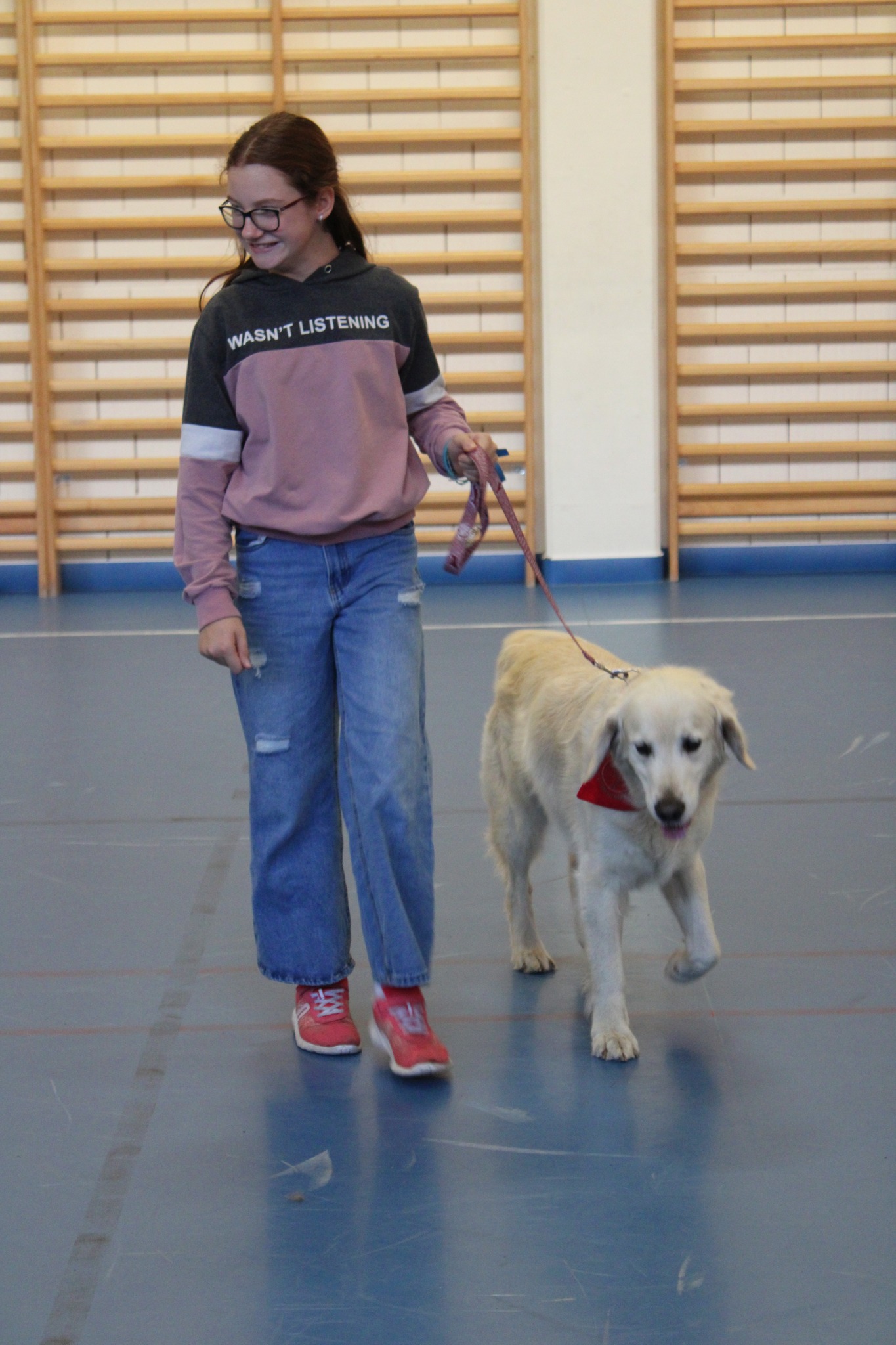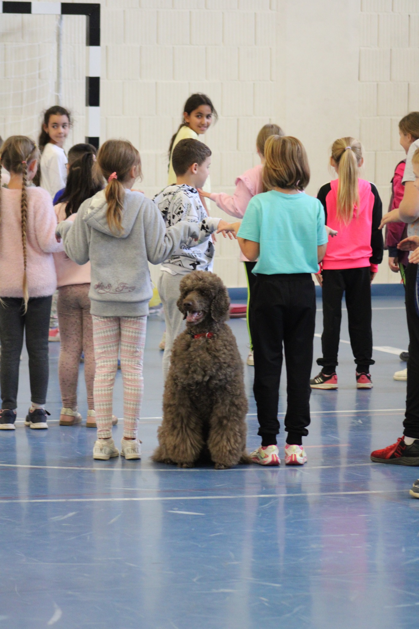 Iskolánk állatbarát intézményként kiemelt figyelmet fordít arra, hogy a rá bízott diákokat érzékennyé tegye a felelős állattartás iránt. Ennek apropóján, 2025. szeptember 29-én – az Állatbarát Témahét keretében -, intézményünk tornacsarnokában különleges élményben részesültek 1–5. évfolyamos tanulóink. A szegedi Puha Mancsok Alapítvány képviseletében ugyanis Gácsi Mária és Monostori Éva látogattak el hozzánk terápiás kutyáikkal, Aramisszal és Ferkóval, hogy egy önfeledt órában nyújtsanak betekintést kisdiákjaink számára a munkakutyák életébe. A különleges foglalkozás keretei között a gyerekek játékos formában tanulhattak a felelős állattartásról: megfigyelhették az ebeket munka közben, kipróbálhatták, milyen vezényszavakkal irányítani vagy pórázon sétáltatni a kutyákat, de azt is megtapasztalhatták, milyen, ha játéktevékenység (szoborjáték, helyfoglaló, stb) közben a kutyák irányítják őket hangadással. A program szervezője Suhajda Cseperke volt, annak megvalósulását pedig az Alapítvány a Csanádpalotai Korszerű Iskola Megteremtéséért finanszírozta, mely anyagi támogatás nélkül ez a maradandó élmény nem jöhetett volna létre. Köszönjük tanulóink nevében.